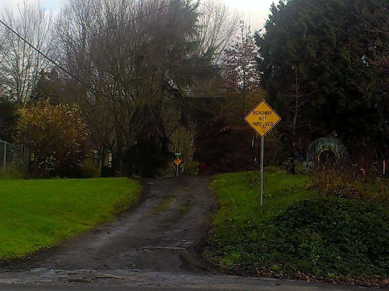While Portland is indeed "a city", we have quite a bit of what are labeled "unimproved roads", streets that haven't been paved and/or graded at all. These can range from widish gravelled streets to basically single track over rough terrain. As I've stated previously, much of this rough stuff is found in the fringes, but you can find bits scattered all over town.